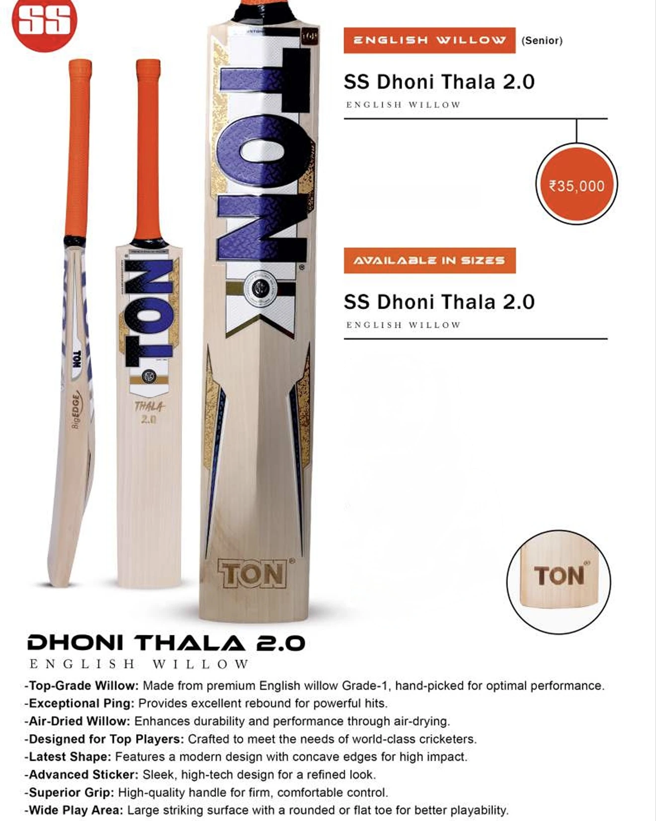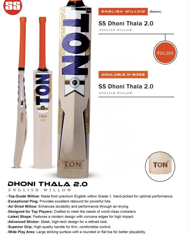 SS Dhoni Thala 2.0 English Willow Cricket Bat (SH)